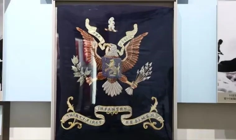 這是陳列在軍博的美軍“北極熊團(tuán)團(tuán)旗”。《跨過(guò)鴨綠江》真實(shí)還原了長(zhǎng)津湖戰(zhàn)役中,志愿軍全殲美北極熊團(tuán)并繳獲其團(tuán)旗的全過(guò)程。