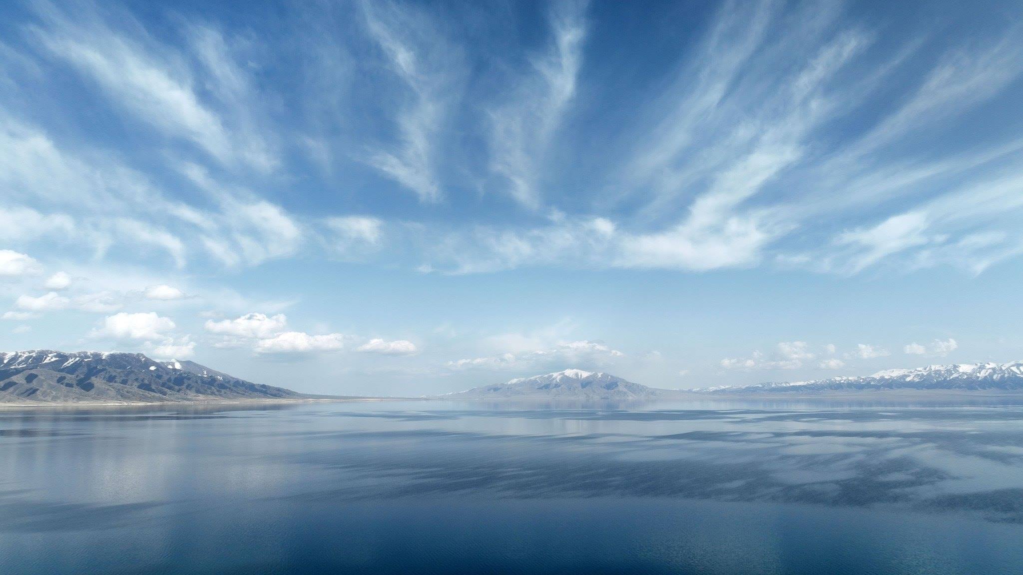 新疆博州:賽里木湖與雪山相互映襯