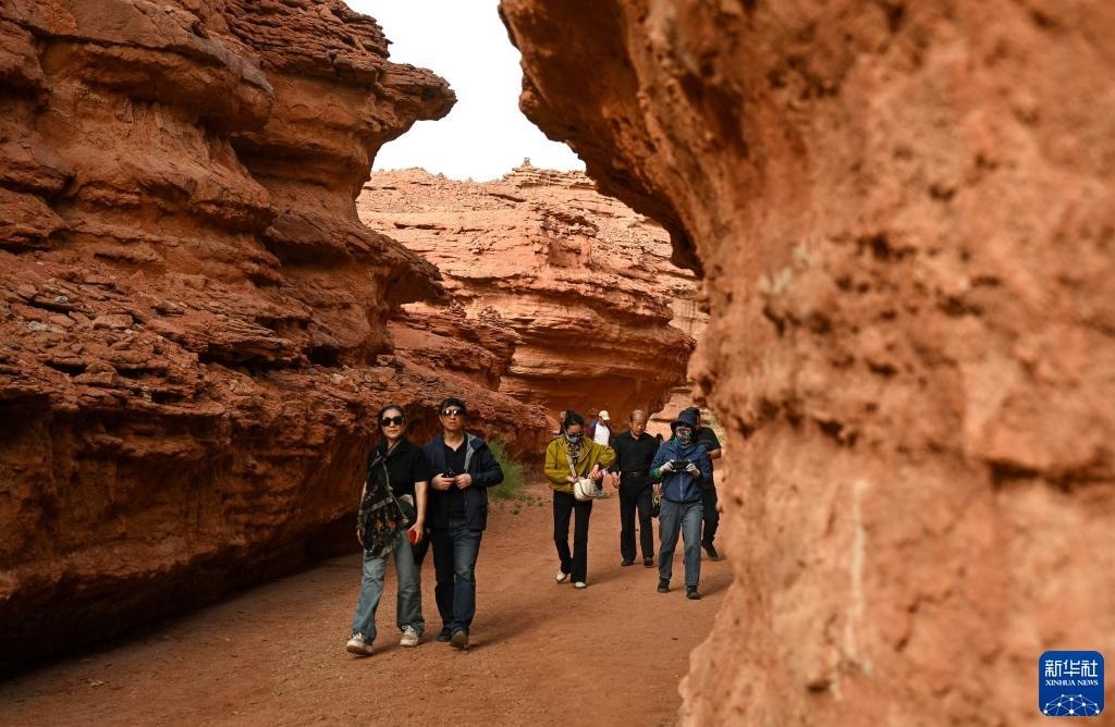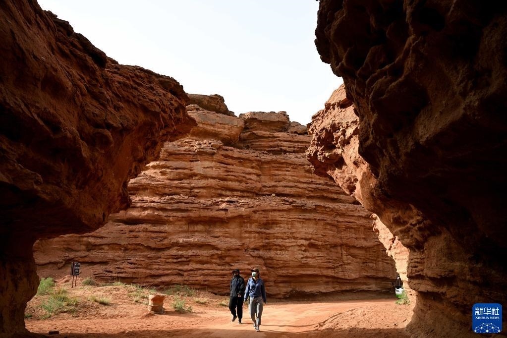 5月13日,游客在內(nèi)蒙古阿拉善盟阿拉善左旗西部夢(mèng)幻峽谷景區(qū)參觀游玩。
