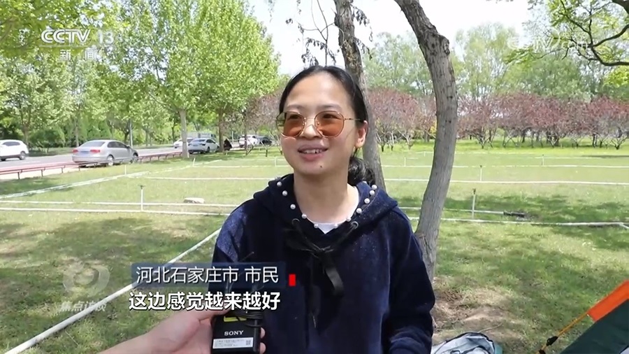 離開了白洋淀,記者又來到河北省石家莊市。周日,陽光和煦,在郊外,很多家庭都會開著車,帶著帳篷、飲食,去河邊露營,感受這初夏的暖意。