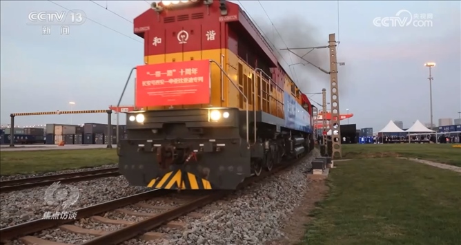 就在上個(gè)月,為紀(jì)念“一帶一路”十周年特別開行的中歐班列——“一帶一路”十周年長安號西安—中亞專列從西安國際港務(wù)區(qū)發(fā)車。2013年11月,首列中歐班列長安號正是由這里出發(fā),開往哈薩克斯坦。從這里啟程的長安號,從最初的年開行46列發(fā)展到去年的4600多列,十年增長了100倍。十年來,長安號累計(jì)開行超過1.6萬列。其中,中亞五國開行量達(dá)到4250列,為促進(jìn)中國同中亞互聯(lián)互通與經(jīng)貿(mào)合作發(fā)揮了重要作用。