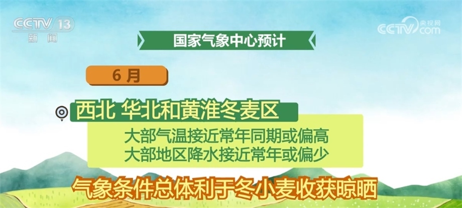 6月,西北、華北和黃淮冬麥區(qū)大部氣溫接近常年同期或偏高,大部地區(qū)降水接近常年或偏少,氣象條件總體利于冬小麥?zhǔn)斋@晾曬;但山西西南部、陜西氣溫偏高,需關(guān)注干熱風(fēng)天氣對(duì)小麥產(chǎn)量形成的不利影響,此外,氣溫偏高、降水偏少可能導(dǎo)致部分地區(qū)墑情偏差,不利于夏種。