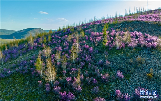 5月22日,內蒙古大興安嶺北部“杜鵑花谷”杜鵑花綻放。新華網(wǎng)發(fā)(李明 攝)