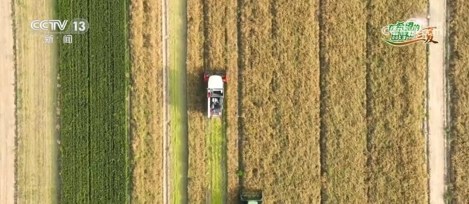 總臺記者 楊海靈:我現(xiàn)在來到了衡水市安平縣,在經(jīng)歷了油菜花明艷的金黃之后,整個田地披上了一層淡淡的黃色。從芳香變?yōu)楣麑?,這里的萬畝油菜籽迎來大面積收獲。很多人見過油菜花,對于油菜籽可能并不熟悉。我手里拿的就是正在收獲的油菜籽,顆粒就在這細(xì)長的豆莢當(dāng)中。農(nóng)民們豐收的喜悅就在這一鼓作氣的干勁里,趁著天氣晴好,聯(lián)合收割機來回穿梭,飽滿的油菜豆莢連著秸稈被收進機器,很快,細(xì)細(xì)密密的油菜籽就被收入機囊當(dāng)中。