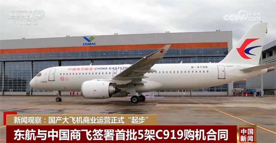 C919大型客機是中國首次按照國際通行適航標(biāo)準(zhǔn)自行研制、具有自主知識產(chǎn)權(quán)的噴氣式干線客機。據(jù)介紹,中國東航和中國商飛已簽署了首批5架C919購機合同。中國商飛今年早些時候則透露,C919訂單數(shù)量已經(jīng)接近1200單。