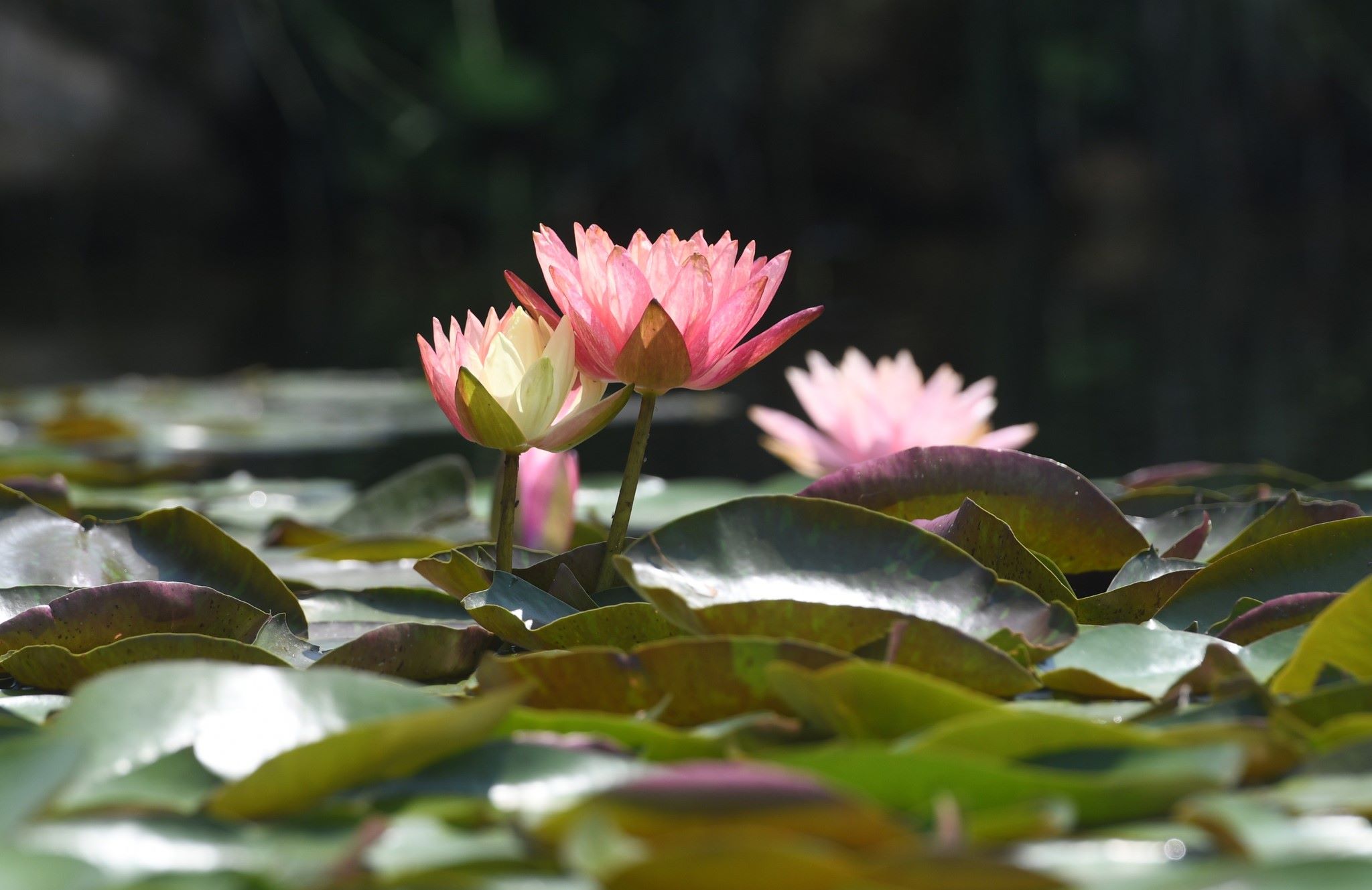 2023年5月29日,杭州良渚古城遺址公園多處水域的雙色睡蓮綻放,美不勝收。 視覺(jué)中國(guó)