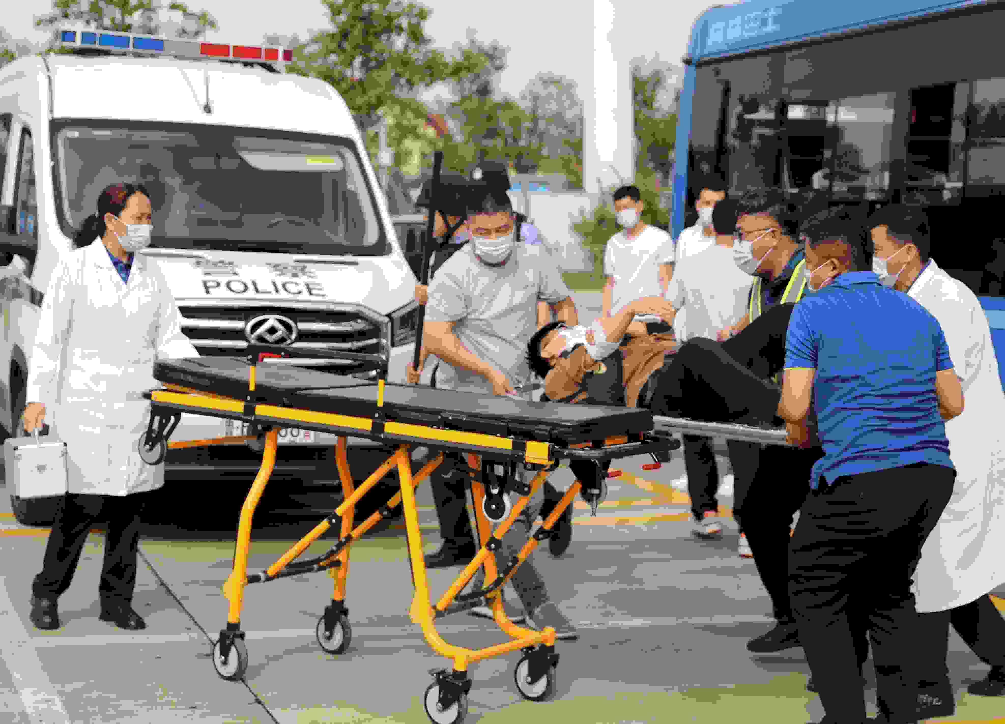 當日,青島真情巴士集團聯(lián)合青島西海岸新區(qū)治安、消防、應急、環(huán)保、交警等部門在金沙灘啤酒城開展道路交通事故及突發(fā)事件應急演練,此次演練旨在進一步完善青島西海岸新區(qū)道路交通應急救援體系,提高道路交通應急處置能力。 (張進剛 攝)