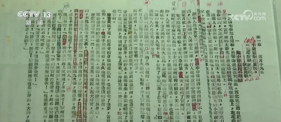 中國出版協(xié)會副理事長兼秘書長 王利明:上邊紅的字就是編輯寫的,紅的墨是助理編輯涂的,紅色下面那些字你還能看得出來,如果用藍(lán)色或黑色一畫就看不出來了。出版社編輯和作家本人、地方政府,一起經(jīng)過無數(shù)次修改,才把這本書推出來。