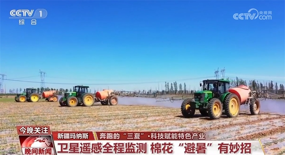眼下,新疆昌吉瑪納斯縣的棉花正值現(xiàn)蕾期?,F(xiàn)蕾期指的是出現(xiàn)花蕾到開花這一段時間,這個時候棉株生長最快,然而持續(xù)的高溫給田間管理帶來考驗。在瑪納斯縣樂土驛鎮(zhèn)的棉花田里,三臺裝有北斗導(dǎo)航系統(tǒng)的大馬力拖拉機正按照預(yù)先設(shè)定的線路進行除草作業(yè)。這是農(nóng)技人員通過衛(wèi)星遙感棉花全程監(jiān)測技術(shù),幫種植戶制定的科學(xué)田管方案。