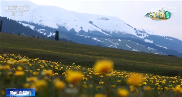 進(jìn)入六月中旬,新疆伊犁河谷氣溫逐步上升,地處天山山脈深處、海拔1800米以上的那拉提草原也迎來了一年中最美的季節(jié)。此時(shí),天山積雪未融,在雪山的環(huán)抱中,這片30多萬畝的高山草甸已是碧綠如翠玉。美麗的金蓮花迎風(fēng)開放,好似給夏日草原鋪上了一層金色地毯。近年來,那拉提草原實(shí)施生態(tài)禁牧,草原植被得到極大恢復(fù)。