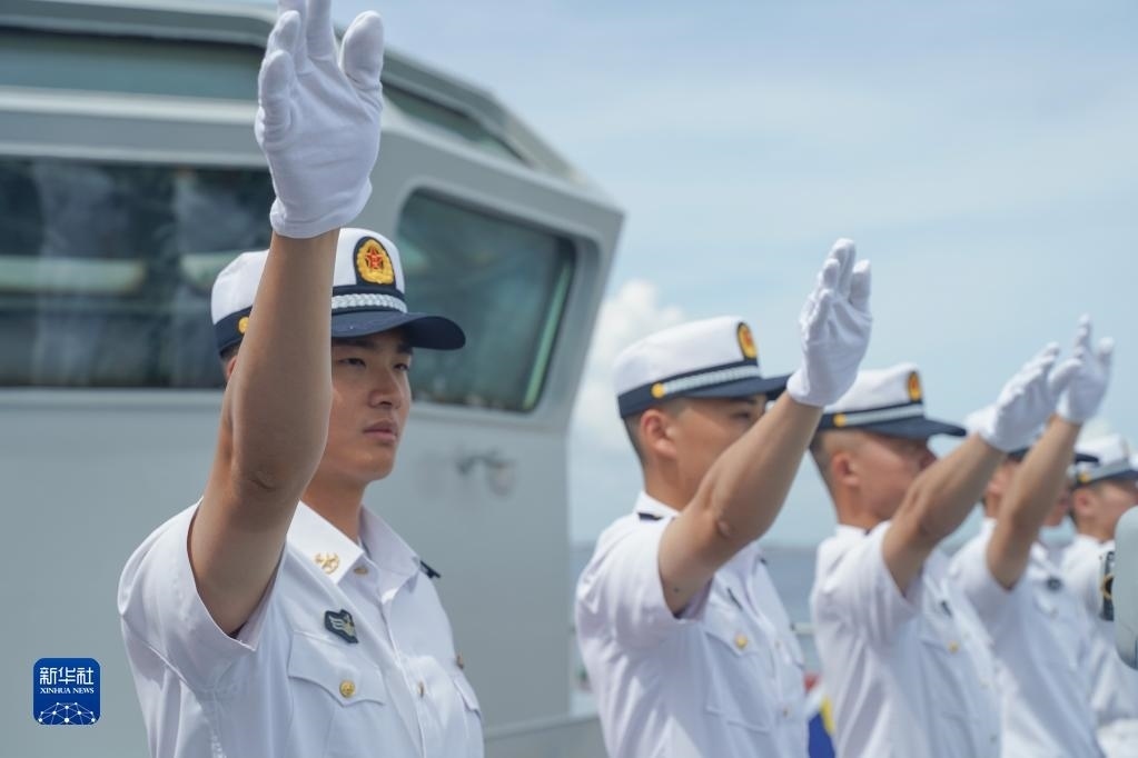 6月14日,在菲律賓馬尼拉港,戚繼光艦船員向前來(lái)迎接的群眾揮手致意。   新華社發(fā)