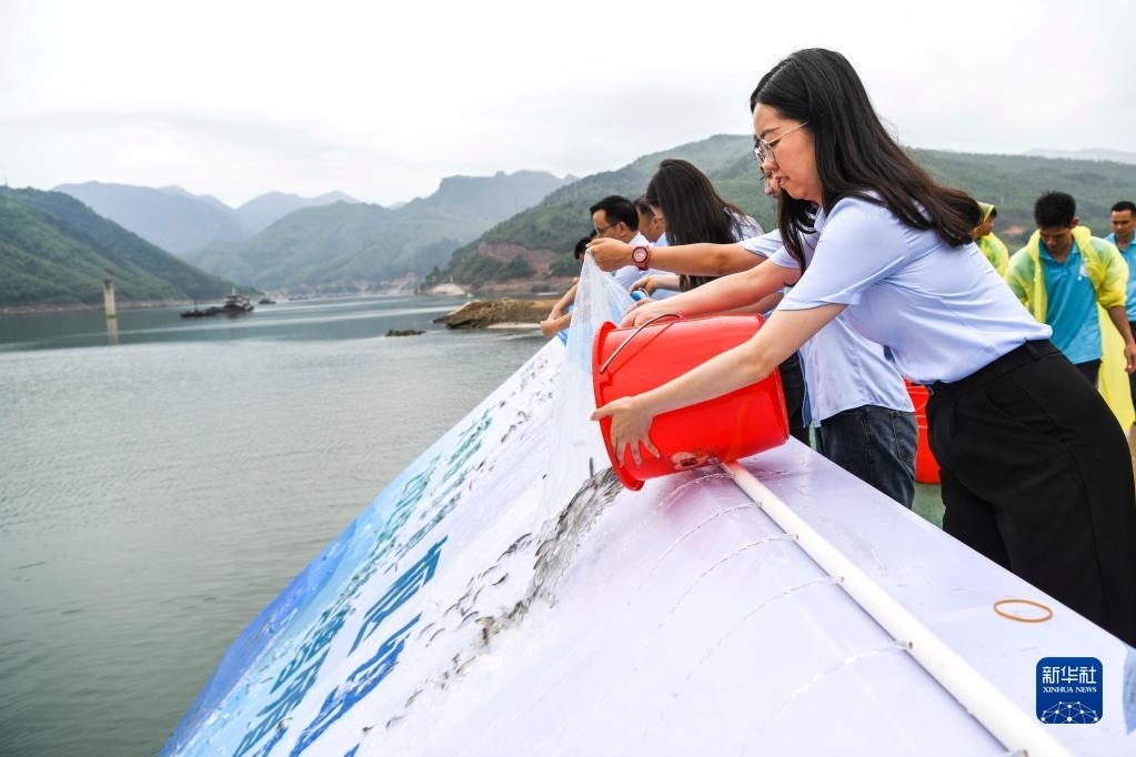 當(dāng)日,位于廣西桂平市的大藤峽水利樞紐工程舉行夏季魚苗放流活動(dòng)。新華社記者 曹祎銘 攝