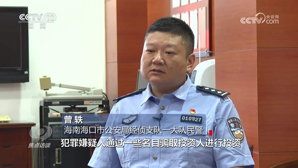 海南??谑泄簿纸?jīng)偵支隊一大隊民警曾軼:“舉報到我們海口市的金融局,由金融局牽頭??谑卸鄠€相關(guān)職能單位,包括稅務(wù)、工商、公安相關(guān)單位一起成立了聯(lián)合調(diào)查組。這個公司如果是一個正常的新能源充電樁公司,收益會源源不斷進入公司的賬戶,我們在調(diào)取相關(guān)銀行流水的過程中發(fā)現(xiàn)沒有?!?/p>