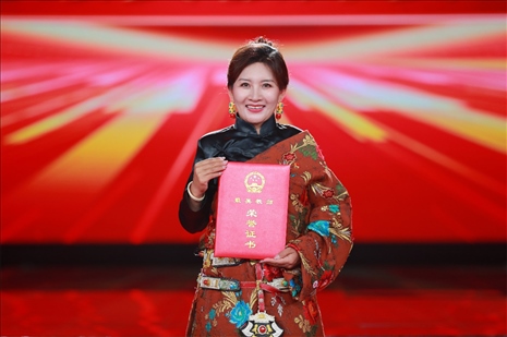 中宣部分管日常工作的副部長、文化和旅游部部長胡和平(左一) 教育部黨組書記、部長懷進鵬(右一) 為最美教師和最美教師團隊頒獎