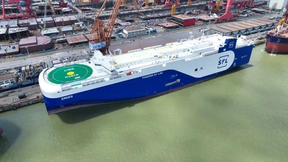 2023年9月12日,廣船國際建造的7000車雙燃料汽車運輸船交付(無人機照片)。(中國船舶集團(tuán)廣船國際供圖)