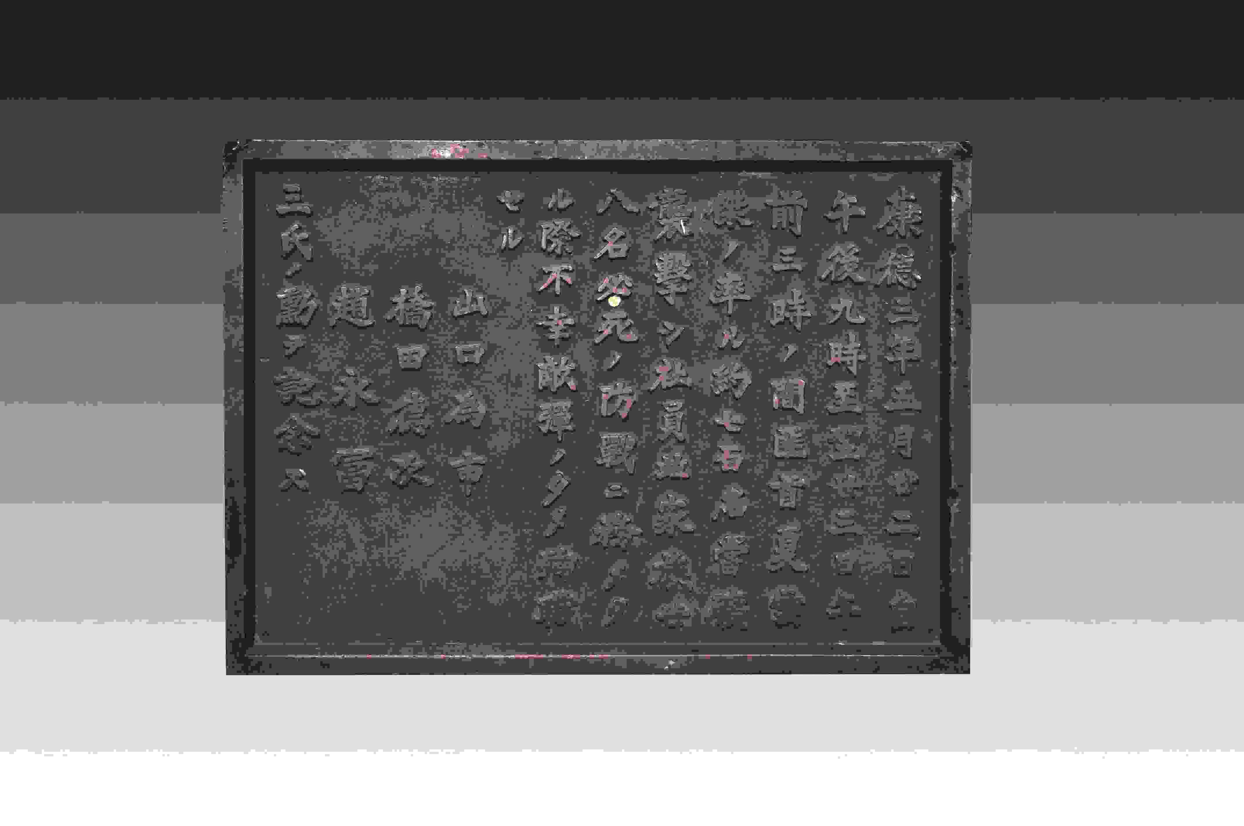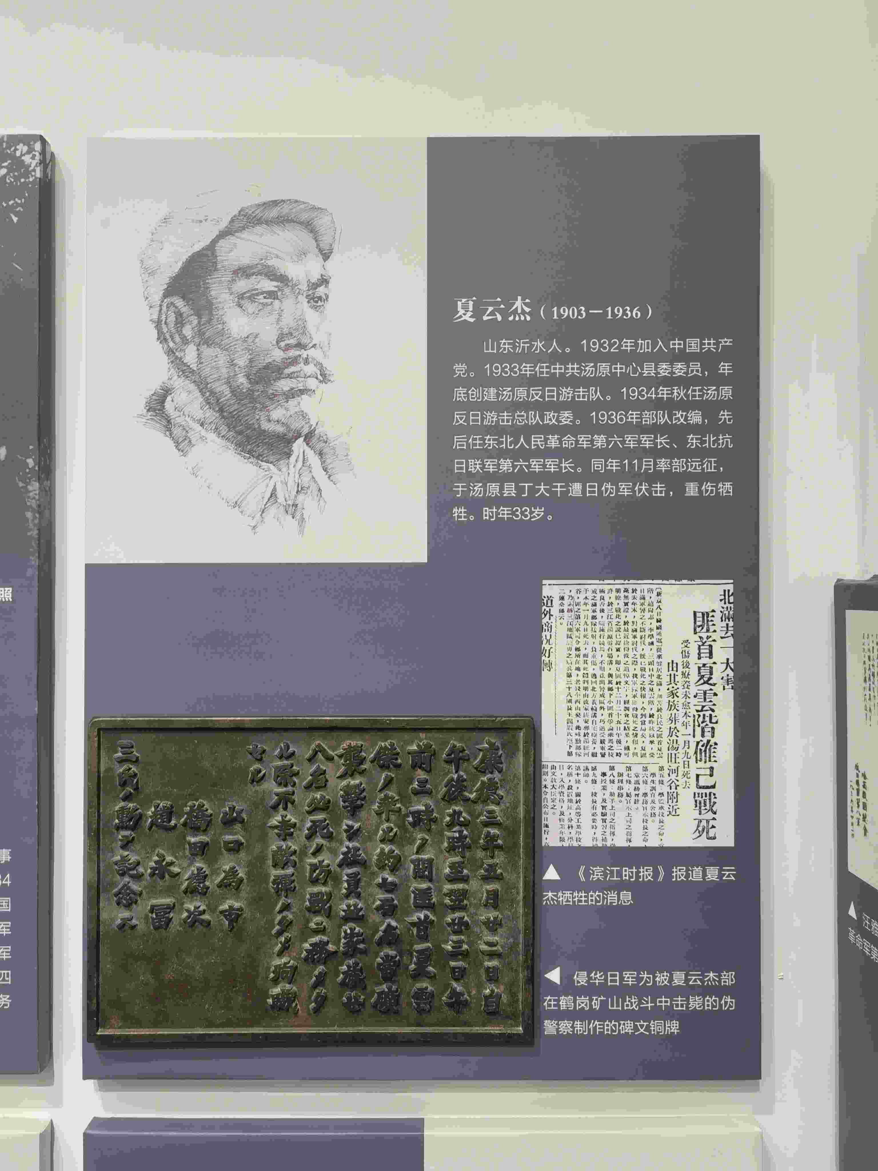 這塊碑文銅牌來自黑龍江鶴崗礦區(qū)的一座“忠靈塔”上,是日本侵略者為侵華戰(zhàn)爭中戰(zhàn)死的日偽軍而建。碑文銅牌,長51厘米、高36.5厘米、寬2厘米、重12千克。上面的文字記載了日偽軍和抗聯(lián)戰(zhàn)士戰(zhàn)斗過程。從表述內(nèi)容來看,這塊碑文具有極大欺騙性。它制造了普通百姓遭土匪襲擊的“無辜”假象,妄圖以此加深東北民眾與革命隊伍之間的對立情緒。而事實真相是,1936年5月22日夜,東北人民革命軍第六軍軍長夏云杰指揮六軍第一、二、三團,分兵兩路襲擊了鶴崗礦山。在我黨地下工作人員的密切配合下,順利解除了礦山警察二隊的全部武裝,并擊斃日軍指導(dǎo)官山口為市、橋田德次和偽礦山警察大隊隊長趙永富。這次戰(zhàn)斗繳獲敵人大批槍支彈藥,我軍無一人傷亡。23日凌晨,夏云杰率領(lǐng)部隊攜帶戰(zhàn)利品凱旋。
