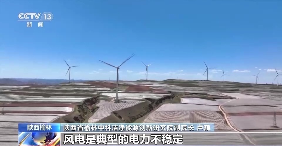 陜西省榆林中科潔凈能源創(chuàng)新研究院副院長 盧巍:風(fēng)電是典型的電力不穩(wěn)定,風(fēng)大多一點,風(fēng)小少一點,然后再就是這個光伏,今天有太陽,可能發(fā)得就多一點,今天陰天,可能就發(fā)得少一點,甚至不發(fā)電。