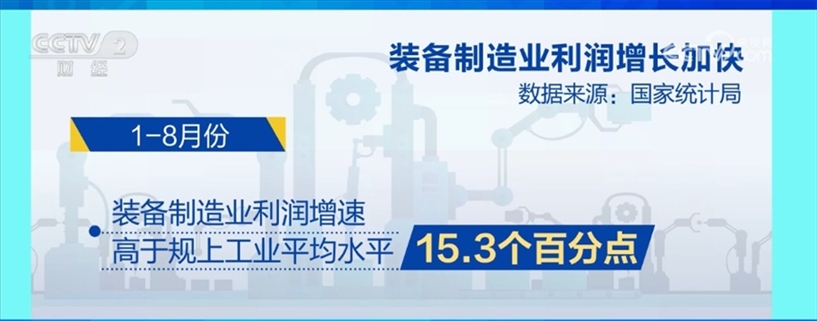 特別是裝備制造業(yè)利潤(rùn)增長(zhǎng)加快。1—8月份,裝備制造業(yè)利潤(rùn)增速高于規(guī)上工業(yè)平均水平15.3個(gè)百分點(diǎn)。其中,電氣機(jī)械、鐵路船舶航空航天運(yùn)輸設(shè)備行業(yè)利潤(rùn)保持較高增速。
