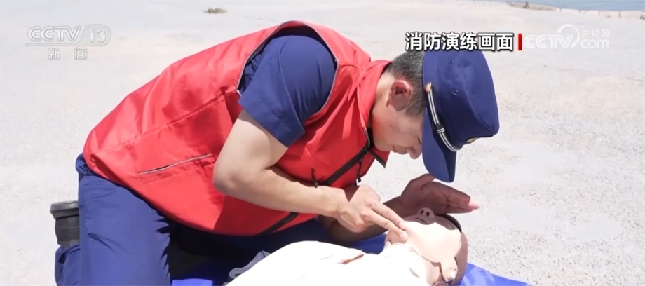 溺水者被救上岸后,專家還作出了科學(xué)救援的正確演示。