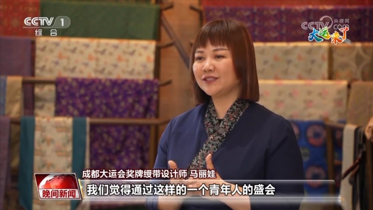 成都大運(yùn)會獎牌綬帶設(shè)計師 馬麗娃:這個體育賽事其實是一個橋梁,通過這樣一個青年人的盛會,把我們這樣一個優(yōu)秀傳統(tǒng)文化,用一個肉眼可見的形式把它傳遞出去,我覺得這是非常棒的一個形式。