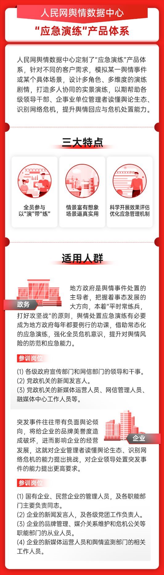 全媒體時代治理網(wǎng)絡(luò)輿情、防范和化解重大風(fēng)險,建立突發(fā)事件輿情處置的應(yīng)急演練機(jī)制,已成為提升地方政府應(yīng)急管理水平、推動社會治理現(xiàn)代化的重要抓手。另一方面,對于企事業(yè)單位而言,在紛繁復(fù)雜的網(wǎng)絡(luò)輿論環(huán)境下,企業(yè)因各類原因爆發(fā)網(wǎng)絡(luò)輿情的概率有所增長,成為輿情的風(fēng)險因子。如何在新形勢下防范和化解重大風(fēng)險,也成為企業(yè)經(jīng)營和品牌聲譽(yù)管理必須面對的新課題。