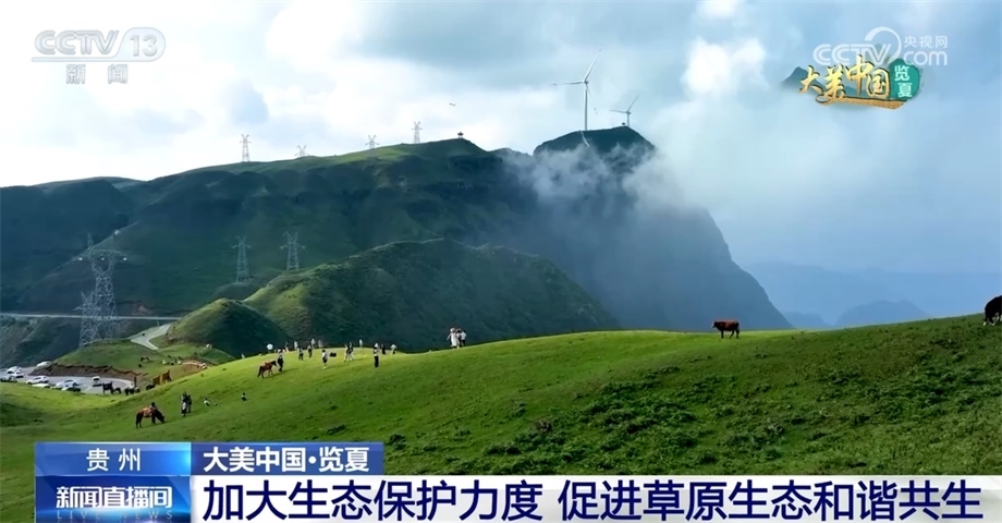 跟隨鏡頭,我們來到貴州六盤水盤州市的烏蒙大草原。眼下,正值盛夏的烏蒙大草原水草豐茂、碧綠如茵、牛羊成群,從空中俯瞰,縹緲的云霧將草原裝扮得十分夢幻。烏蒙大草原最高海拔2857米。因為地處高海拔地區(qū),這里的氣候適宜,吸引了許多游客來到這里避暑旅游。近年來,當?shù)丶哟髮Υ迕窈陀慰偷男麄饕龑ЯΧ?,并采取措施限制過度放牧,嚴厲打擊采挖野生高原矮杜鵑和駕車碾壓草地等行為,保護草原生態(tài)平衡,維護生物多樣性,讓烏蒙大草原生態(tài)持續(xù)向好,實現(xiàn)人與自然和諧共生。