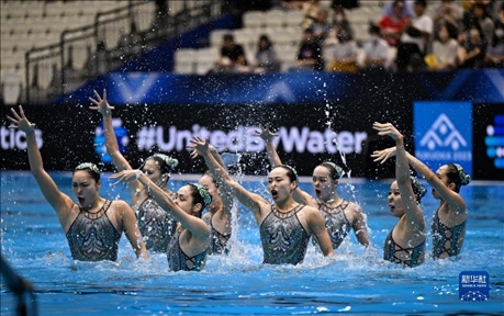 7月21日,在日本福岡舉行2023年世界游泳錦標(biāo)賽花樣游泳集體自由自選決賽中,中國隊(duì)以329.1687分的成績獲得冠軍。