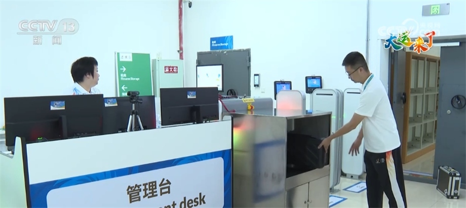 總臺記者 王勝東:我現(xiàn)在就來到了射擊場館非常重要的一個區(qū)域——槍彈庫,這里通過人臉識別、芯片識別和這臺X光機(jī),共同組成了一套安檢系統(tǒng),可以確保教練員和運(yùn)動員在人、槍、彈分離的安全前提下快速、有效地通關(guān)、出入庫。