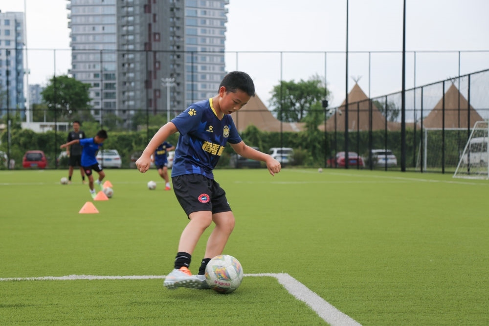 7月21日,在四川天府新區(qū)CDT運動公園內(nèi),小朋友參加暑期少兒足球訓練。新華社記者 楊進 攝