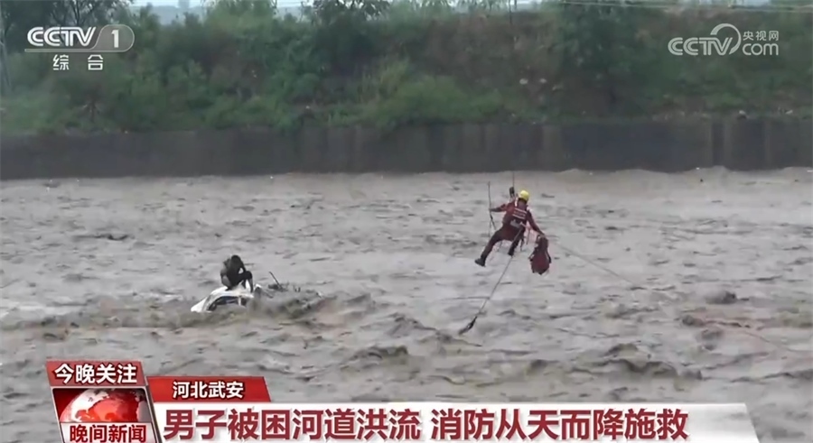 7月30日下午,河北武安一男子駕車涉水過橋時(shí),被湍急的洪水沖入洺河河道近百米,救援人員接警后立即趕往現(xiàn)場(chǎng)。從現(xiàn)場(chǎng)情況看,因水流過于湍急,被困車輛隨急流翻滾,洪流一度沒過車頂。現(xiàn)場(chǎng)指揮員隨即協(xié)調(diào)起吊車等工程車輛協(xié)助進(jìn)行救援,最終經(jīng)過1小時(shí)20分的驚險(xiǎn)救援,被困男子成功獲救。