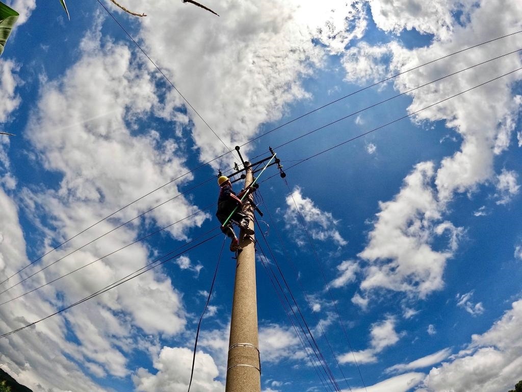 8月5日,電力搶修人員在進行作業(yè)。(王潤澤 攝)