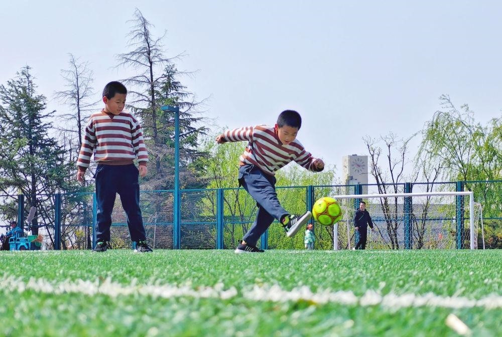 △2023年4月9日,小朋友在山東青島市即墨區(qū)一處“口袋公園”游玩。