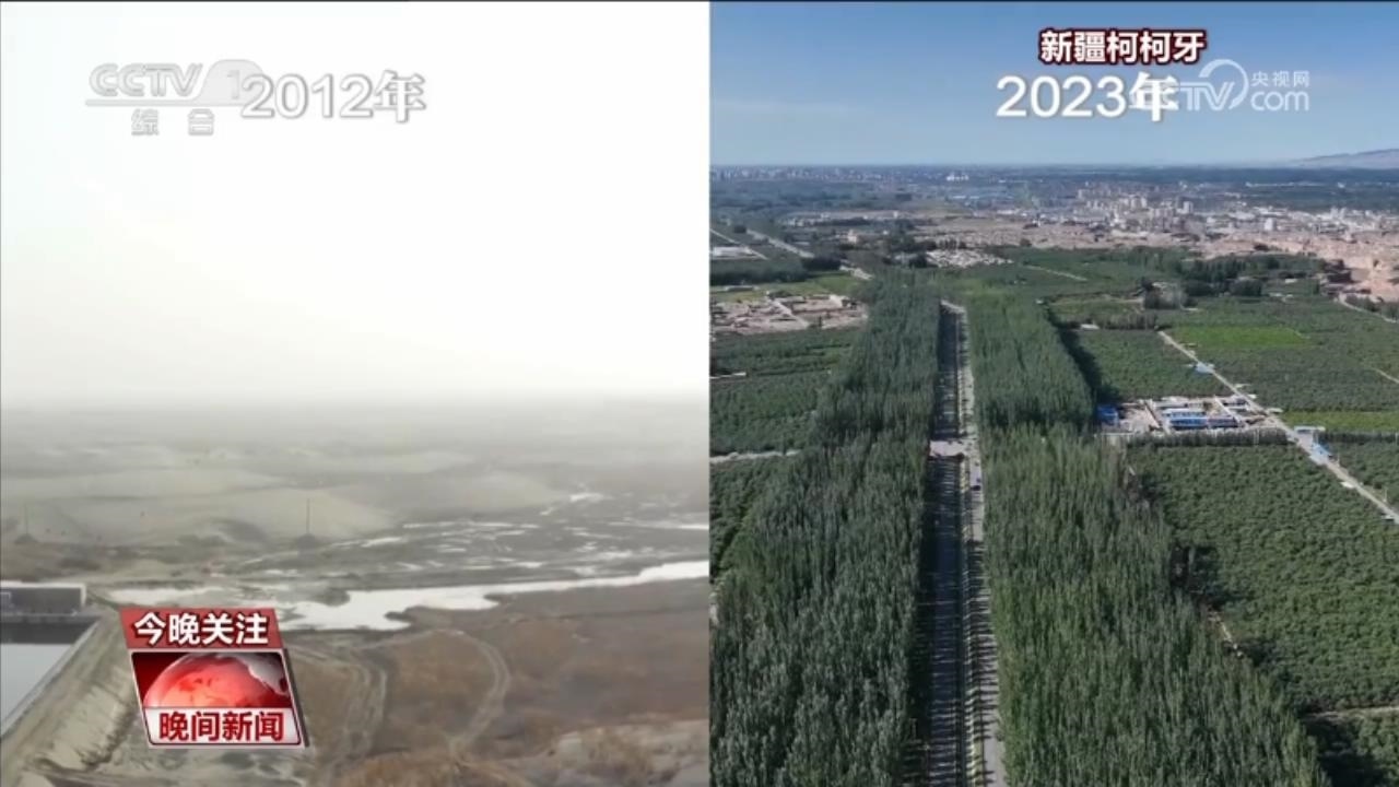 新疆阿克蘇地區(qū)的柯柯牙曾經(jīng)是南疆風(fēng)沙策源地之一。30年來,面對柯柯牙缺水和土壤鹽堿含量高的情況,當(dāng)?shù)叵到y(tǒng)推進山水林田湖草沙一體化保護和系統(tǒng)治理,柯柯牙綠化工程造林共計120.26萬畝,累計栽植樹木1400萬株,荒漠變?yōu)榱趾?,最終在貧瘠的戈壁荒漠中,造就了一道“綠色長城”。