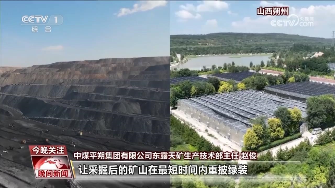 盛夏時節(jié),走進山西平朔礦區(qū),通過把復(fù)墾土地與光伏發(fā)電結(jié)合起來,“架上發(fā)電、架下牧草”的生態(tài)美景重現(xiàn)。萬畝林地、草地與藍(lán)色“光伏海洋”交相輝映。