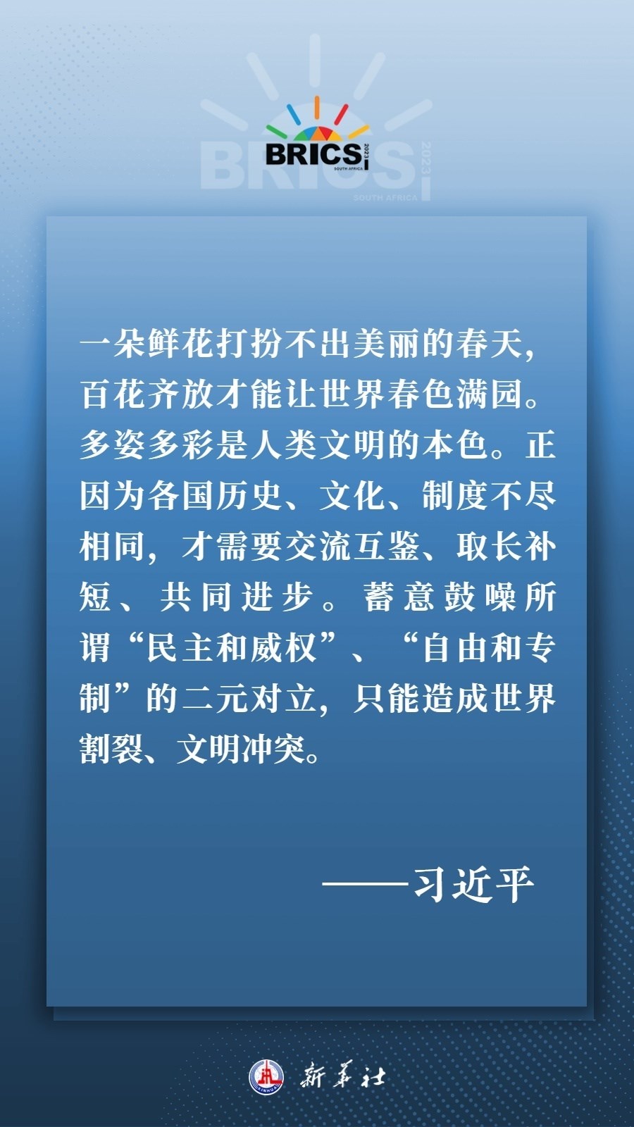 當?shù)貢r間8月22日下午,國家主席習近平向約翰內(nèi)斯堡金磚國家工商論壇閉幕式發(fā)表致辭,為各國深化團結合作、應對風險挑戰(zhàn)、共建更加美好的世界指明方向——