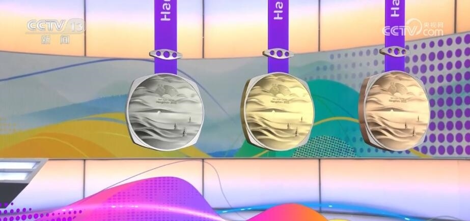 杭州亞運(yùn)會(huì)獎(jiǎng)牌名為“湖山”。“湖山”將良渚文化的方形玉琮和圓形的獎(jiǎng)?wù)氯跒橐惑w,正面用凸出的線條勾勒出“三面云山一面城”的杭城畫卷,湖水漣漪,山巒起伏。獎(jiǎng)牌上方的束扣是一個(gè)帶有倒影的三孔橋,設(shè)計(jì)取自京杭大運(yùn)河最南端的拱宸橋。一塊獎(jiǎng)牌,將杭州的三處世界文化遺產(chǎn)——良渚、西湖、大運(yùn)河都融入其中。