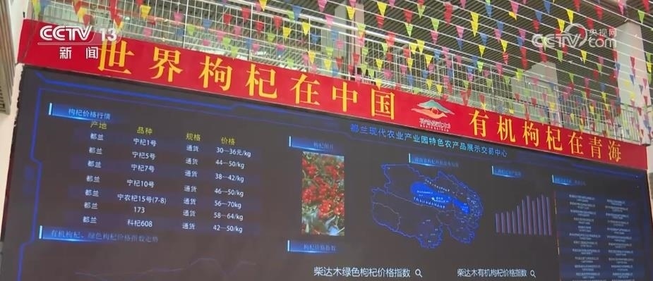 這兩天,在剛剛投入運(yùn)行的都蘭縣國家級現(xiàn)代農(nóng)業(yè)產(chǎn)業(yè)園特色農(nóng)產(chǎn)品展示交易中心內(nèi),匯集了不少枸杞種植戶和外來采購商。眼前,這塊屏幕上顯示的,是國內(nèi)不同品種枸杞當(dāng)前的市場價格、價格指數(shù)走勢、種植區(qū)域分布、產(chǎn)量等信息。