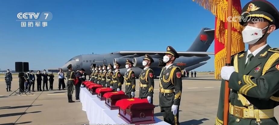 空軍航空兵某團 孟洋:當時在儀式的現(xiàn)場,我們機組成員是列隊在飛機的后艙位置,準備迎接烈士遺骸上飛機。當儀仗隊隊員緩緩地將棺槨搬上飛機的那一刻,我看著一面面國旗覆蓋在棺槨上,直到那一刻,我才更加深刻地理解我們國旗的顏色是由無數(shù)革命先烈鮮血染成的。