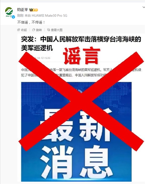 ·“解放軍擊落美軍巡邏機”?鈞正平辟謠:不信謠,不傳謠!