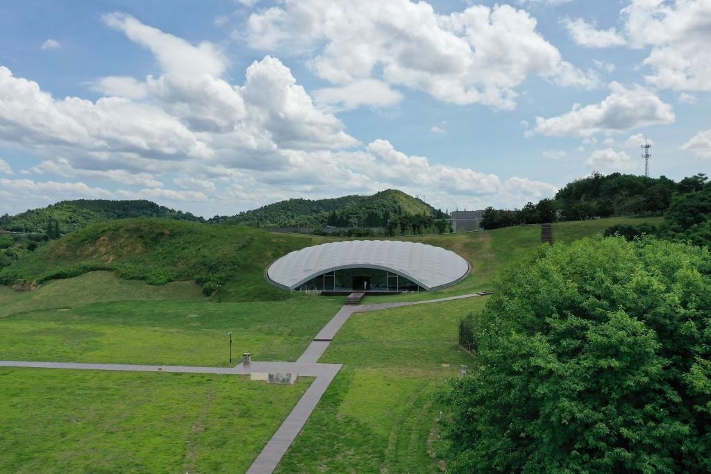 2022年7月6日拍攝的良渚古城遺址老虎嶺遺址公園(無(wú)人機(jī)照片)。新華社記者 黃宗治 攝