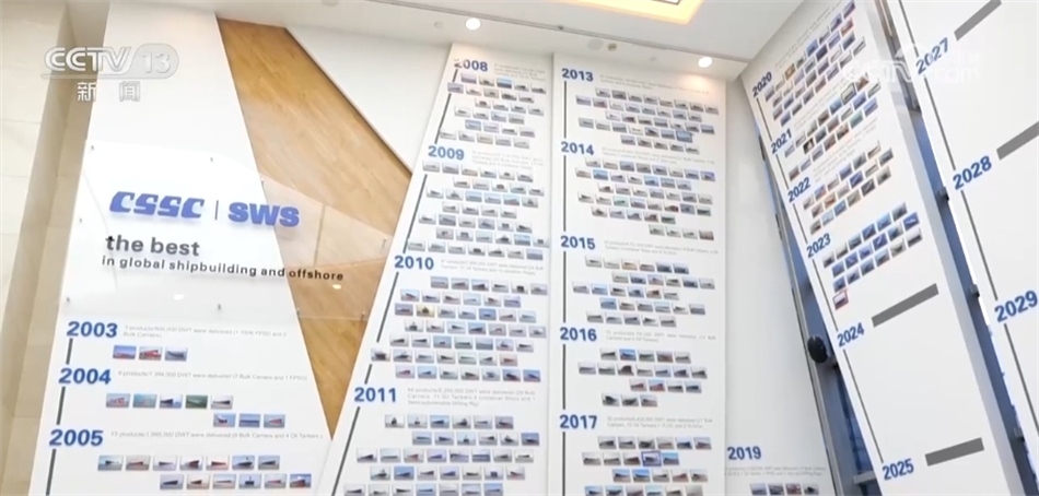 總臺(tái)央視記者 吳天白:在中國船舶外高橋造船,我們發(fā)現(xiàn)了這樣一面墻,墻上一共貼著553張已交付船型的照片。從最早的散貨船、原油船,再到超大型液化氣船、自升式鉆井平臺(tái),包括今天要貼到這面墻上的國產(chǎn)首艘大型郵輪。我們可以看到,隨著時(shí)間的推移,交付船型的附加值變得越來越高,這也體現(xiàn)著我國造船能力質(zhì)的飛躍。