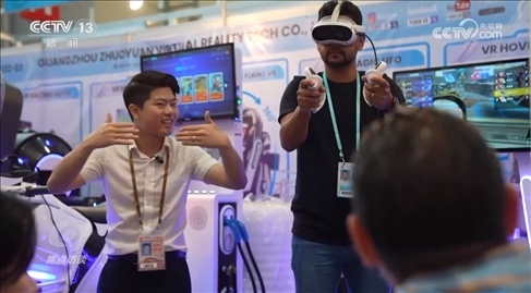 在這家企業(yè)的展位上,一款創(chuàng)新的VR平衡車(chē)以獨(dú)特設(shè)計(jì)和高交互性受到眾多采購(gòu)商的青睞。等待體驗(yàn)的人群排起了長(zhǎng)隊(duì)。