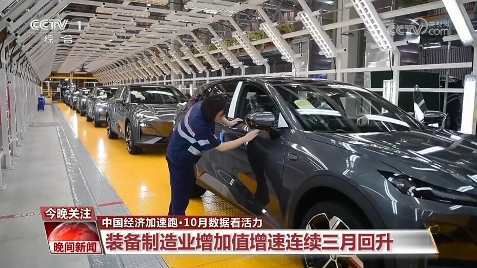 從工業(yè)看,10月份,全國(guó)規(guī)模以上工業(yè)增加值同比增長(zhǎng)4.6%,比上月加快0.1個(gè)百分點(diǎn)。裝備制造業(yè)增加值 比上月加快0.7個(gè)百分點(diǎn),增速連續(xù)三個(gè)月回升。其中,汽車制造業(yè)表現(xiàn)突出,增加值同比增長(zhǎng)了10.8%,比上月加快1.8個(gè)百分點(diǎn)。此外,創(chuàng)新動(dòng)能持續(xù)增強(qiáng)。今年前10個(gè)月,高技術(shù)產(chǎn)業(yè)投資同比增長(zhǎng)11.1%。新產(chǎn)業(yè)的快速增長(zhǎng)對(duì)經(jīng)濟(jì)發(fā)展的帶動(dòng)作用日益凸顯。10月份,規(guī)模以上航空航天器及設(shè)備制造業(yè)增加值,同比增長(zhǎng)12.3%;新能源汽車產(chǎn)量同比增長(zhǎng)27.9%。