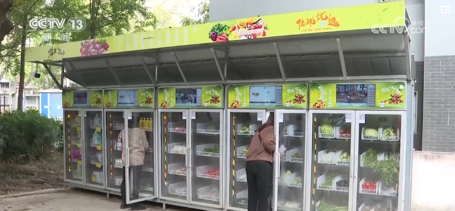 在四川中江縣城的這個小區(qū)門口,記者看到一排無人售貨柜擺放在院落一角。售貨柜里,擺放著20余種蔬菜和副食品。一旁的生鮮自提柜里,則提供冷鏈產品線上下單、線下自提服務。這種24小時的便利提貨柜,實現(xiàn)了消費者消費升級的需求。