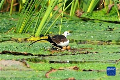 杭州灣濕地公園的水雉。新華網(wǎng)發(fā) 浙江杭州灣國(guó)家濕地公園供圖