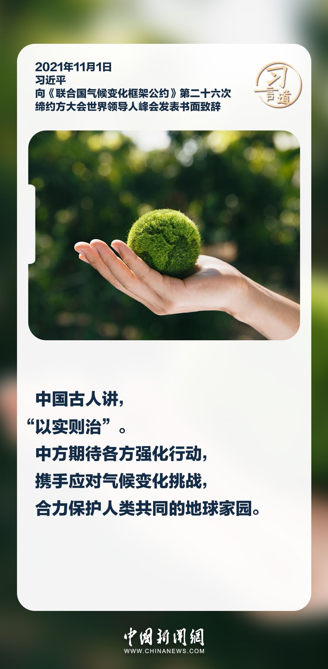 保護(hù)生態(tài)環(huán)境、應(yīng)對氣候變化是全人類面臨的共同挑戰(zhàn)。習(xí)近平主席高度重視應(yīng)對氣候變化國際合作,提出一系列重要倡議和主張,強(qiáng)調(diào)攜手應(yīng)對氣候變化挑戰(zhàn),合力保護(hù)人類共同的地球家園。