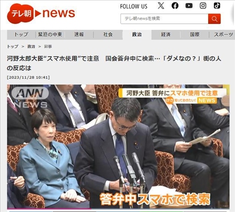 ·據(jù)日媒報道,27日,日本參議院預(yù)算委員會公開答辯中,數(shù)字大臣河野太郎在回答問題時,拿出手機試圖查詢資料,被委員長叫停。