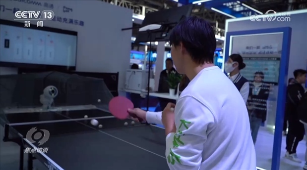 數(shù)字科技鏈的展館有一臺全球首款擬人型發(fā)球機器人,能實時捕捉高速乒乓球的軌跡,生成專業(yè)報告,數(shù)字科技讓運動變得更加有趣。