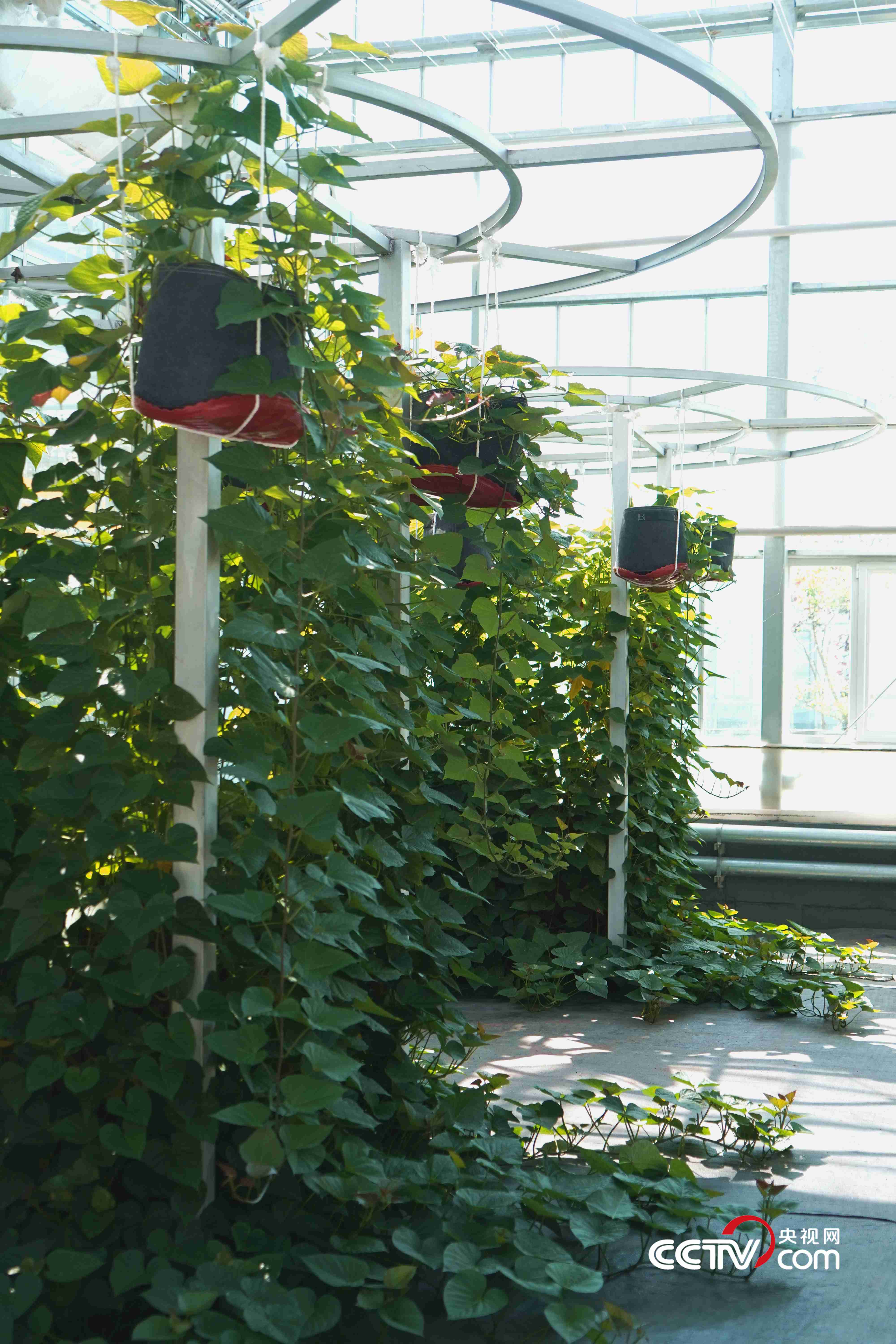 空中紅薯則利用深液流栽培模式,將紅薯由傳統(tǒng)的土壤栽培轉(zhuǎn)變?yōu)樗耘嗟哪J?。陸璐表示,其特點(diǎn)體現(xiàn)在水生根系能為植株提供充足的水肥,壓蔓產(chǎn)生的不定根成為儲藏根,實(shí)現(xiàn)了根系的分工合作,能夠達(dá)到一年種植多年采收的效果。“據(jù)測算,單株冠幅在60平方米的‘紅薯樹’一年可產(chǎn)1200多斤的紅薯?!边@種栽培模式不僅能帶來經(jīng)濟(jì)效益,在農(nóng)業(yè)觀光、科普教育方面也有獨(dú)特價(jià)值。