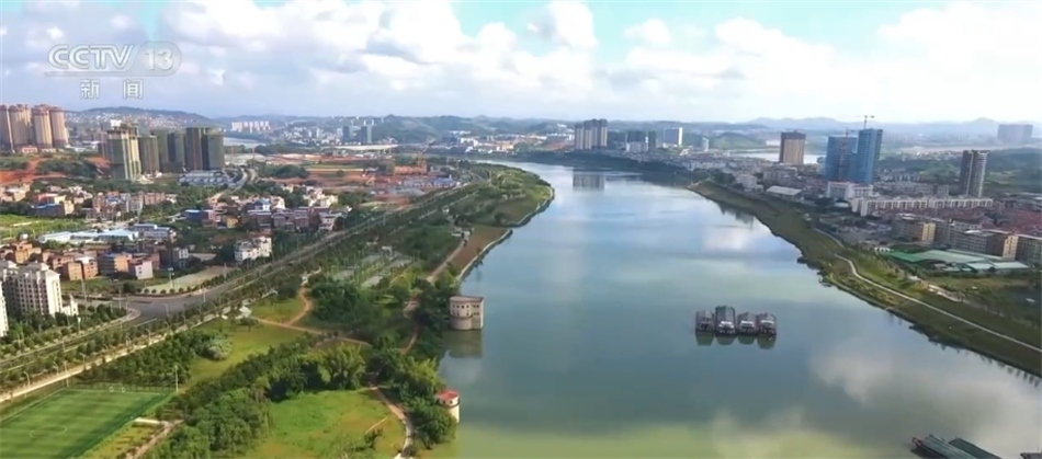 現(xiàn)在我們看到的是廣西南寧邕江河畔,沿岸植被郁郁蔥蔥,10多座濱水公園各具特色,200多處運動場分布其中。市民們在球場里、在步道上盡享運動健身帶來的樂趣,不僅有各種體育運動場所,還有健身器材及滑梯、秋千等兒童游樂設(shè)施。